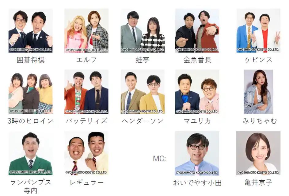 出演者:囲碁将棋、エルフ、蛙亭、金魚番長、ケビンス、3時のヒロイン、バッテリィズ、ヘンダーソン、マユリカ、みりちゃむ、ランパンプス寺内、レギュラー |