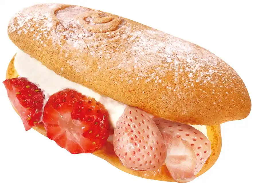 フルーツの産地や品種にこだわって仕上げた、新春限定フレーバーです。ふわふわブッセ生地に沖縄県産和三盆糖入り練乳クリームとカスタードクリーム、福岡県産あまおう苺、茨城県産淡雪をサンドしました。新春を彩る苺&白苺の2種のこだわり苺を飾った贅沢な一品。新年の幕開けにぴったりな紅白スイーツをぜひお楽しみください。 |