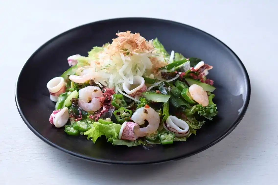 | 藻類の中でもメジャーな、「わかめ」と「焼きのり」をふんだんに使ったさっぱりとした口当たりが特長の一品。 | |||||||||||||||||||