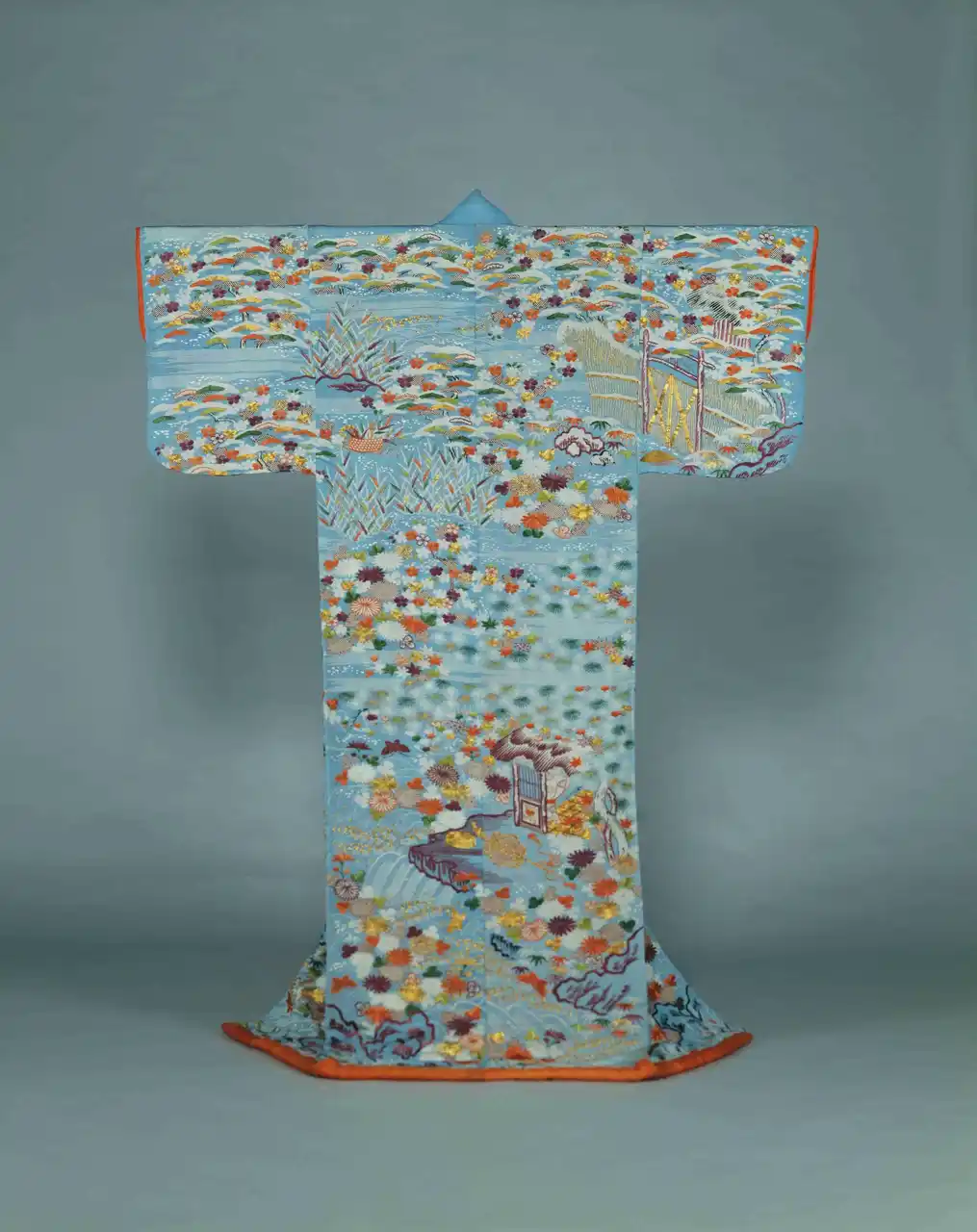 出品作品2.「浅葱縮緬地秋冬風景模様小袖 江戸時代・19世紀」 |