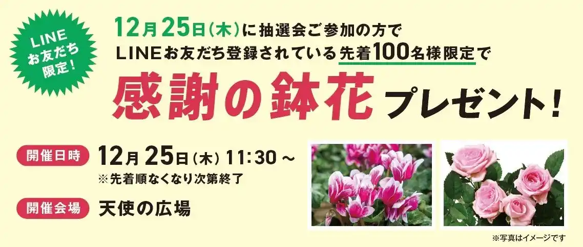 12月25日(木)抽選会ご参加のLINEお友だち限定!先着100名様に「感謝の鉢花」プレゼント!