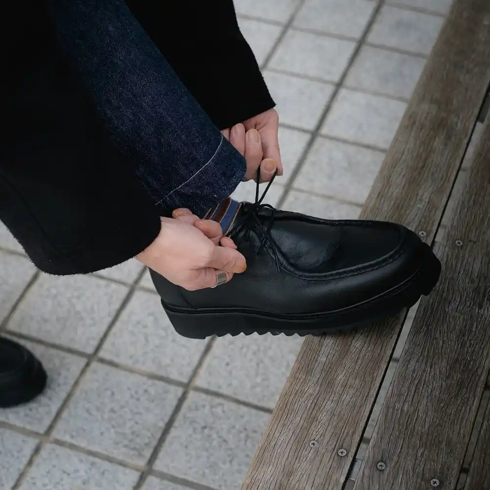 ぽってりトゥ×重心低め。ワーク、アウトドア、機材持ち歩き派にちょうどいい。 |