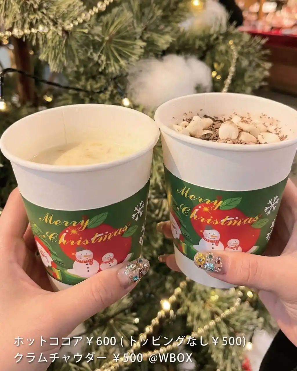 ・ホットココア ¥600(トッピングなし ¥500) ・クラムチャウダー ¥500 ・クリスマス雑貨、オーナメント販売 ほか |