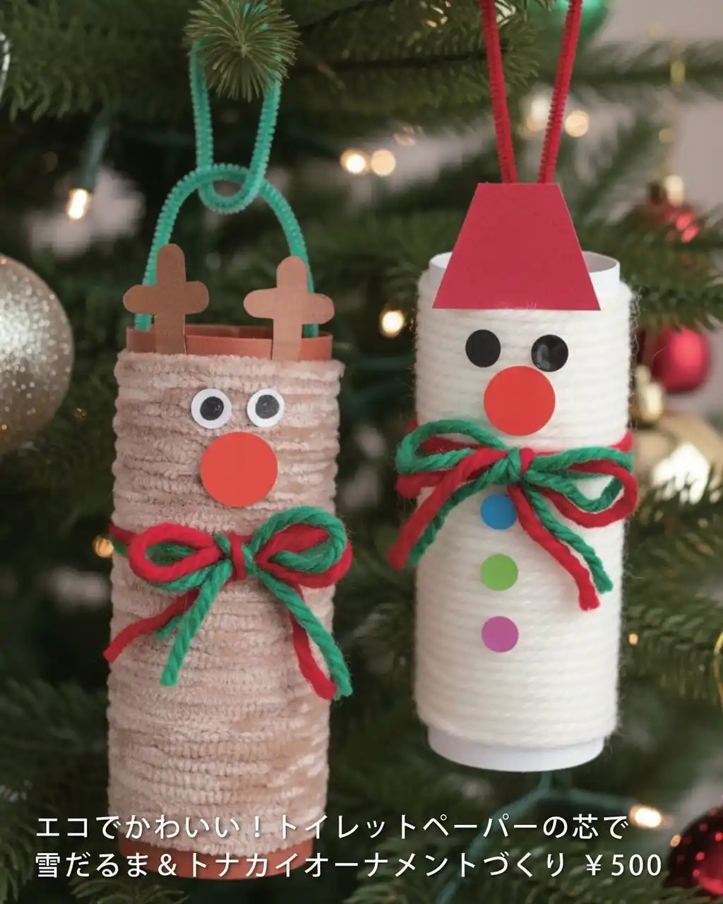 ● 雪だるま&トナカイ オーナメントづくり ¥500 トイレットペーパーの芯を使った、エコでかわいいクリスマスオーナメント制作体験。 |