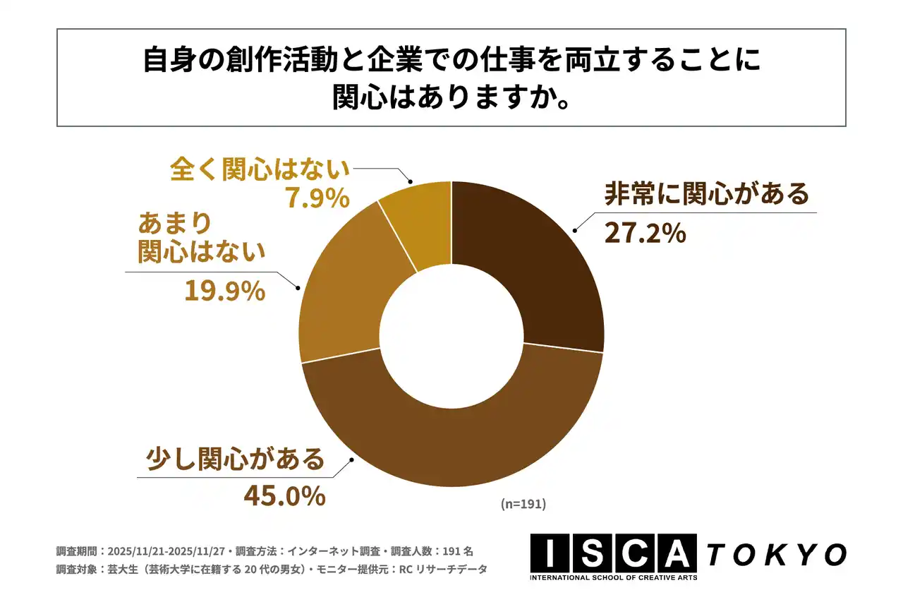 ・芸大生の7割以上が、自身の創作活動と企業での仕事を両立することに関心がある |