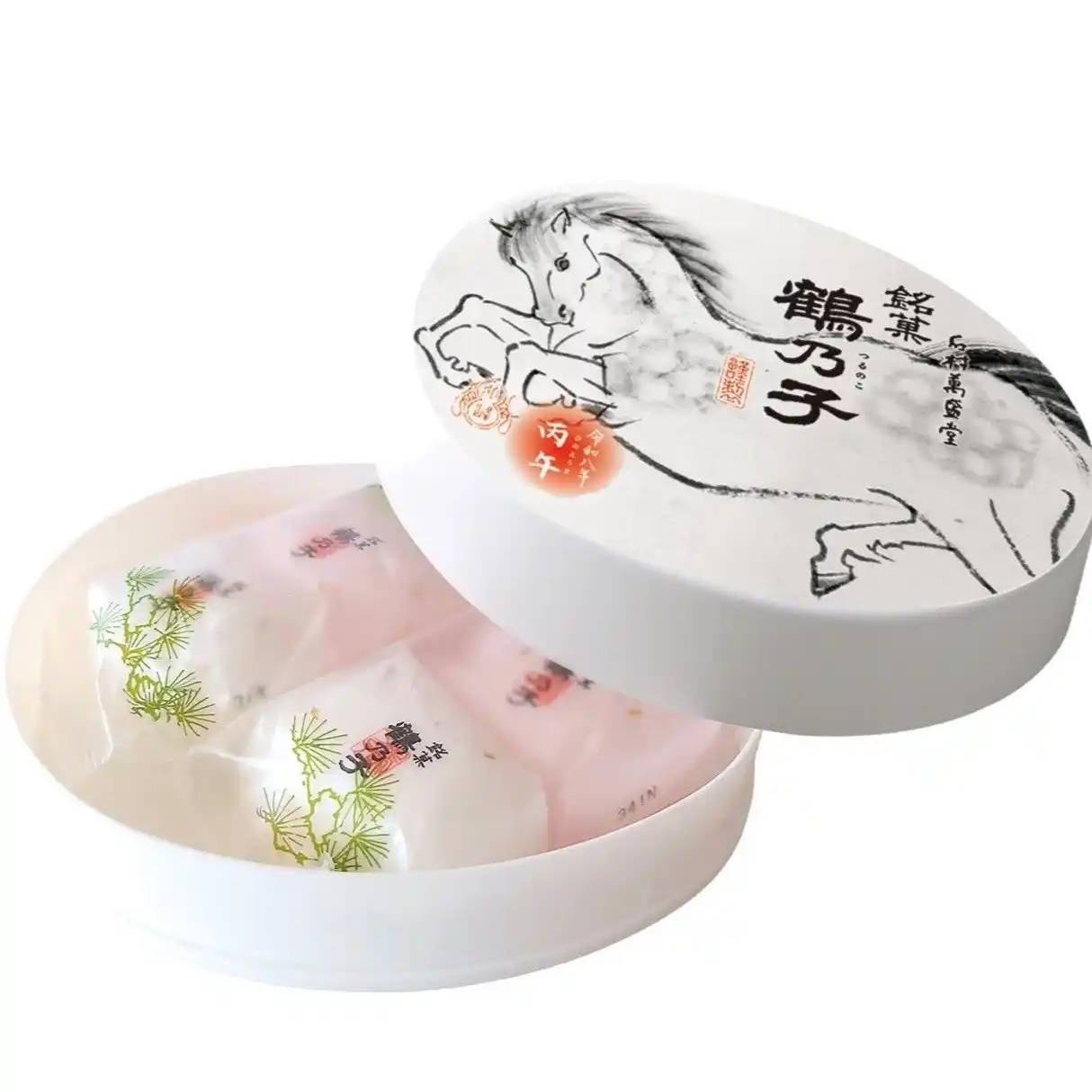 | 新たな年が幸運と健康で過ごせますようにとの願いを込めた干支鶴乃子。干支の絵は、中村人形 4代目 中村弘峰氏に描いていただきました。親子で駆けている様子は、子馬が必死に駆ける姿を親馬が優しく見守る、そんな風景が描かれています。博多の文化・伝統に触れ、皆様が健やかな新年を迎えていただきますように、と祈念した縁起のよい限定パッケージです。 | |||||||||