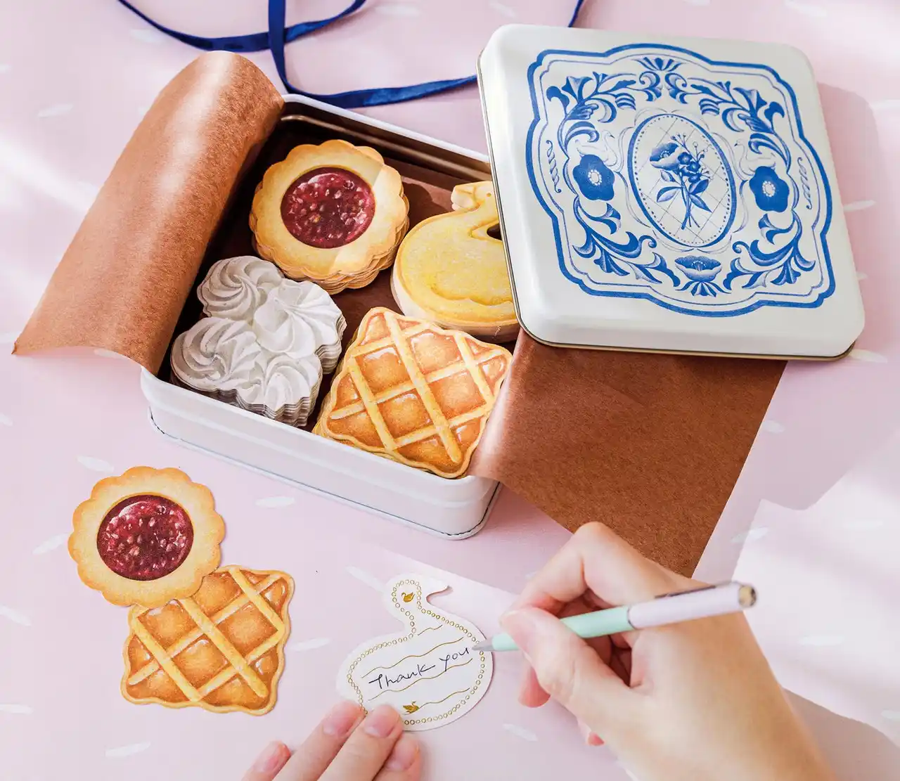 缶を開けるたびにワクワクときめく本物みたいなクッキーイラストのカードがぎっしり |