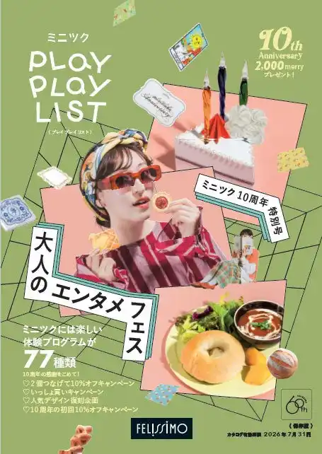 あわせてミニツク総合編カタログで「大人のエンタメフェス」と題し、特に過去ミニツクで好評で、再販希望が多かったデザインがリバイバルする「人気デザイン復刻祭」など楽しいイベントを開催しています。2026年はミニツク10周年記念イヤー。一年を通し、webサイトやカタログで楽しい企画をお届けします。 |