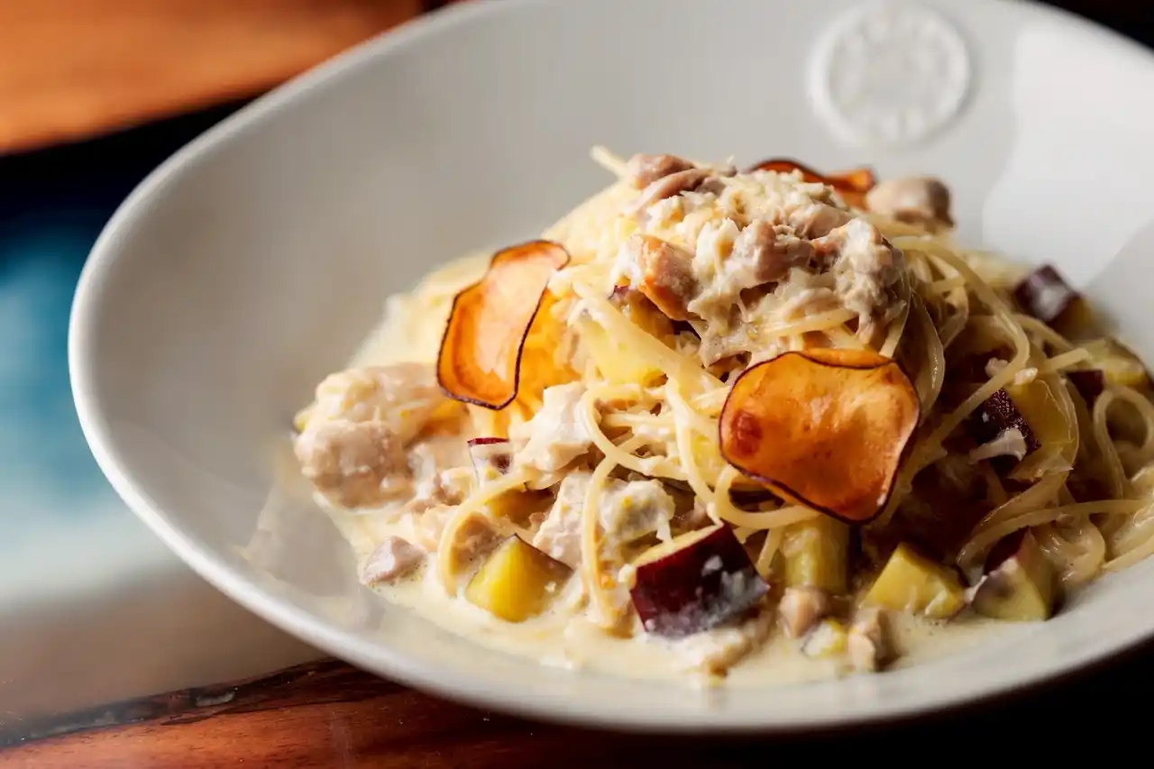 さつま純然鶏のラグーとさつまいものクリームソースパスタ |
