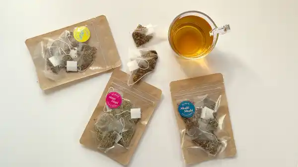 サービスを開始した2024年に、とある展示会で出会ったのが、オリジナルブレンドハーブティー専門店のBunny’s Herbさんでした。ブースに並ぶ商品のかわいいデザインやパッケージに惹かれ、色々お話を聞いてみると、心や体の悩みに合わせたパーソナルブレンドをしていること、オーガニックにこだわったサステナブルなオリジナル商品の開発ができることなどがわかり、初のオリジナル商品に向けて全面的に協力していただくことになりました。