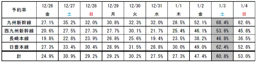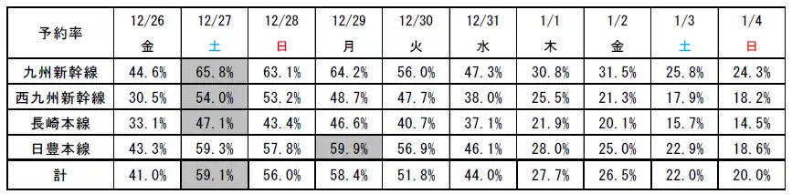 期間中の予約状況は下りが12 月27 日(土)、上りが1 月3 日(土)に最も多くご予約を頂い |