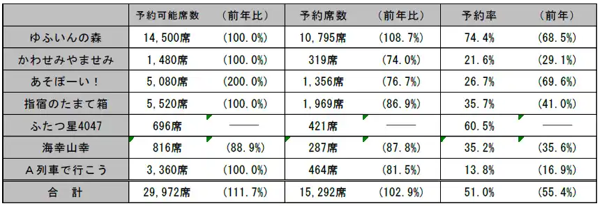 ※「36 ぷらす3」「或る列車」「かんぱち・いちろく」は、旅行商品(ツアーデスクでのパッケ |
