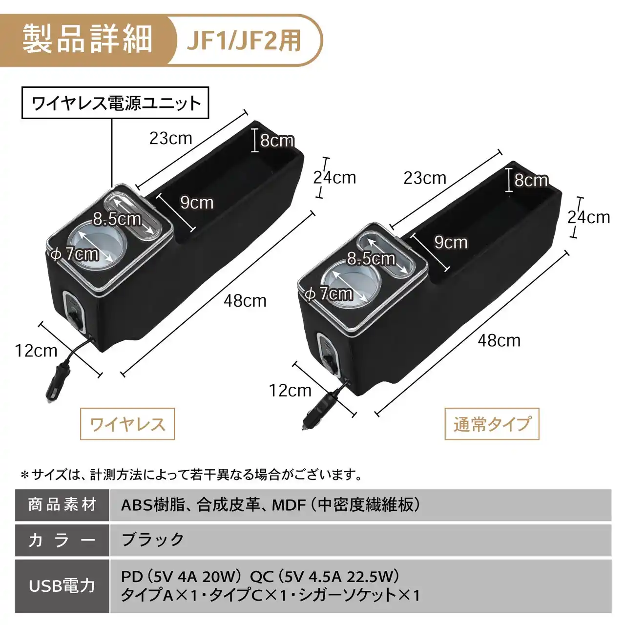 [製品詳細] 商品素材:ABS樹脂、合成皮革、MDF(中密度繊維板) 商品カラー:ブラック USB電力:PD(5V 4A 20W) QC(5V 4.5A 22.5W) タイプA×1・タイプC×1・シガーソケット×1 *サイズ・重量は、計測方法によって若干異なる場合がございます。 |