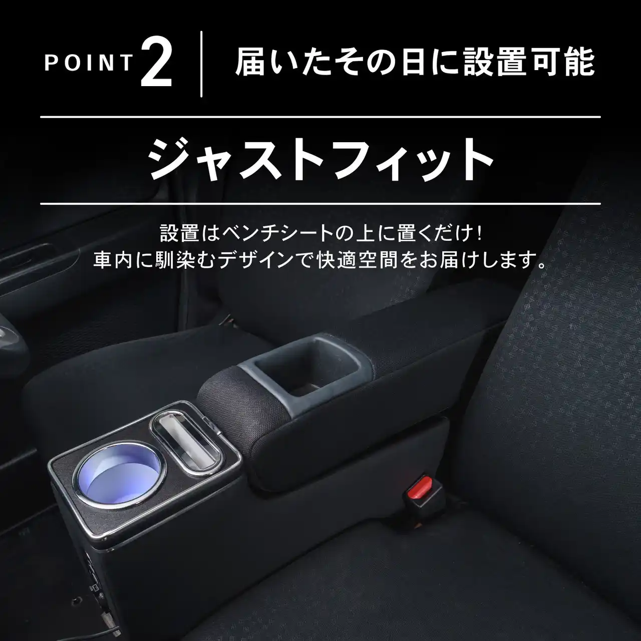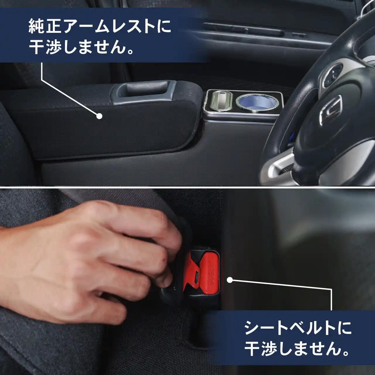 | 純正アームレスト、シートベルトの干渉なし | |||||||||||||||||||||