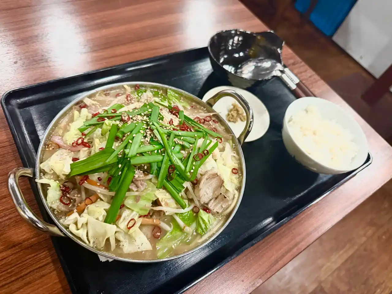 店主特製、醤油ベースで仕上げたコシキもつ鍋ちゃんぽんオリジナル風味で |
