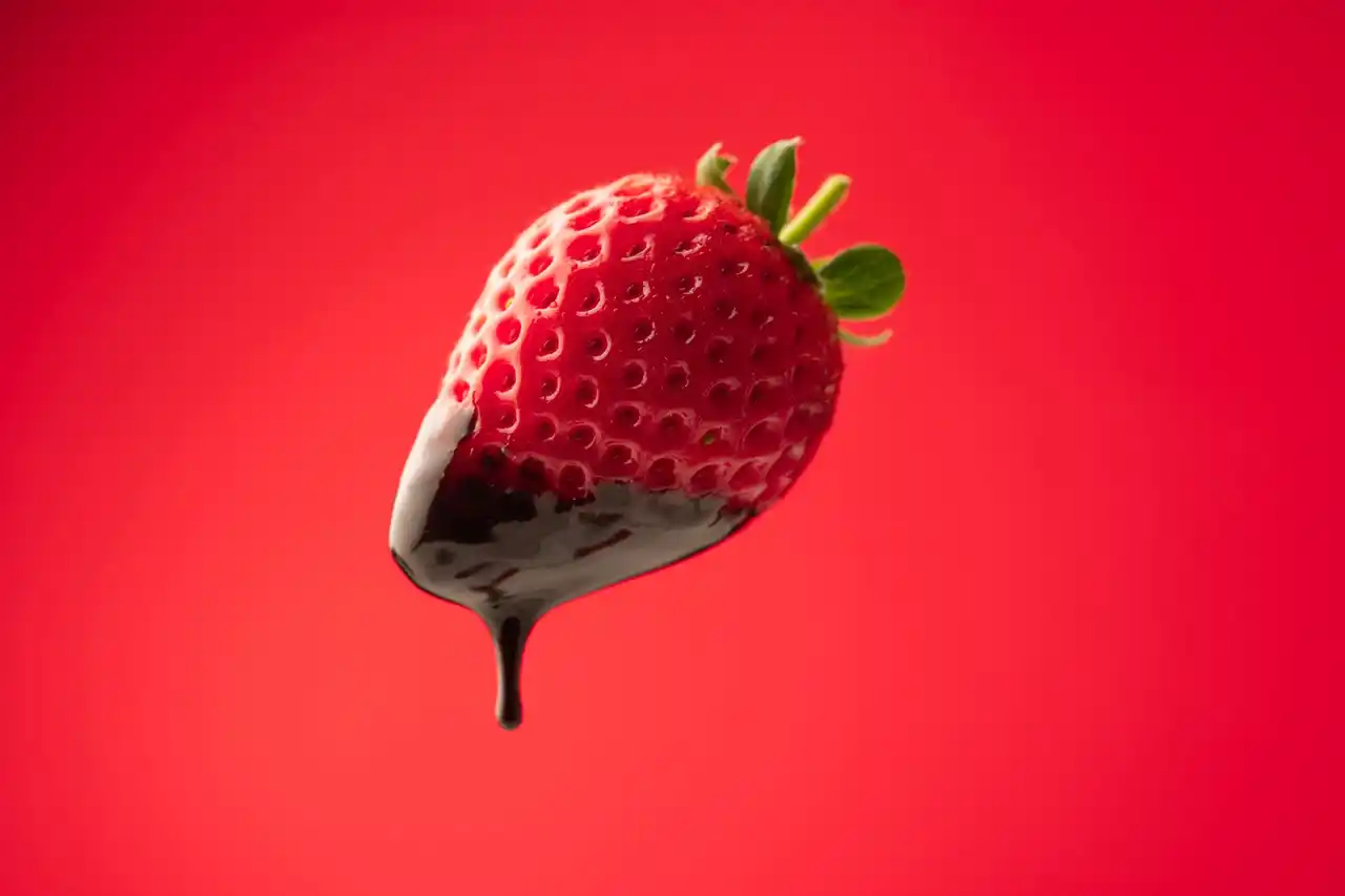 ■赤と茶色のコントラストが美しいスイーツとチョコレートフォンデュ |