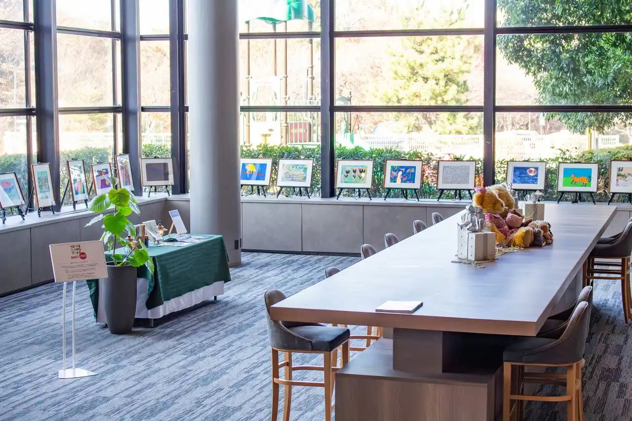 ホテルロビーに設けられたギャラリースペースでは、那須のアーティストによる作品展示を行い、地域文化とアートの発信拠点としての役割を担っています。 |