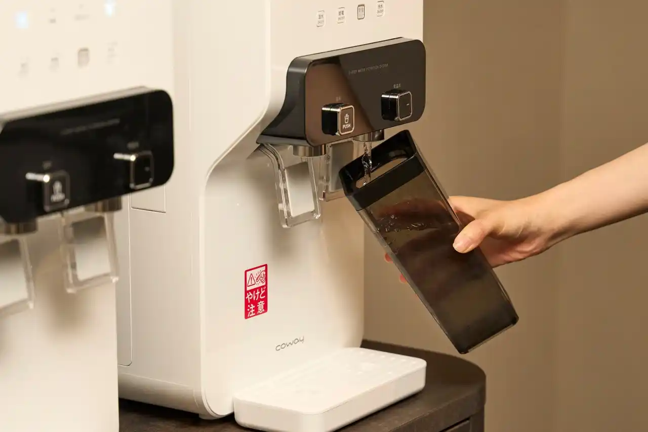 ペットボトル廃棄を削減するため、客室には再利用可能なボトルを、また館内各所にウォーターサーバーを設置しています。 |