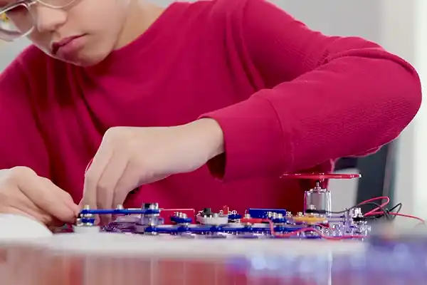この瞬間こそが、学びの大きな一歩です。ただ説明書通りに組み立てるだけではなく、「なぜ光ったのか?」「どうすればもっと面白い仕組みが作れるのか?」と考える力が自然と育ちます。 経験を積むごとに完成する回路は多様になり、音が鳴ったり、モーターが回ったりと、遊びながら学習内容が深まっていきます。