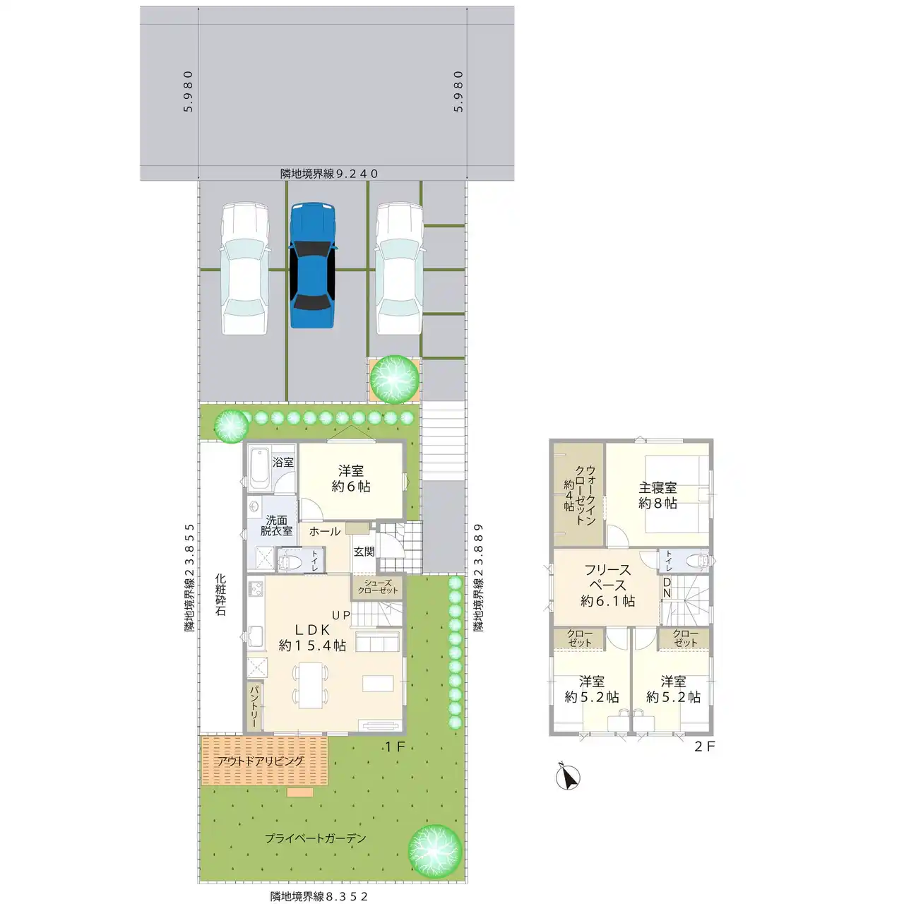 駐車3台分を確保した外構工事済みの敷地設計 |