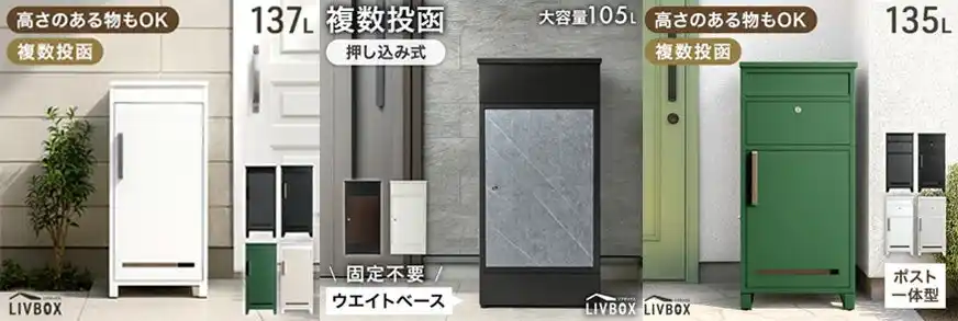 | 当社では、EC事業を通じて深刻化する日本の物流課題に向き合うべく、2020年9月より宅配ボックスの企画・販売をスタートし、【大容量モデル】や【スリット窓付きモデル】、【押し込み式】など幅広いラインナップを展開しています。 | |||||||||
