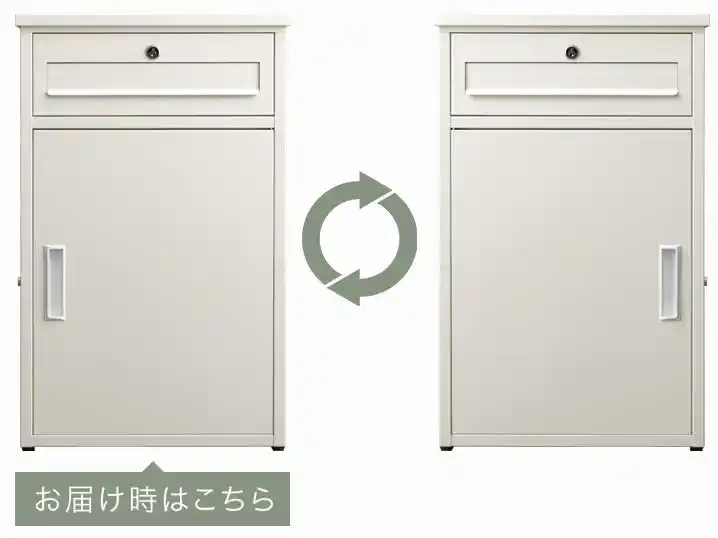 | 一般的な宅配ボックスでは、扉の開閉方向が固定されているものも多く、設置場所によっては生活動線を妨げるケースや、開閉しづらい場合もあります。 | |||||||||