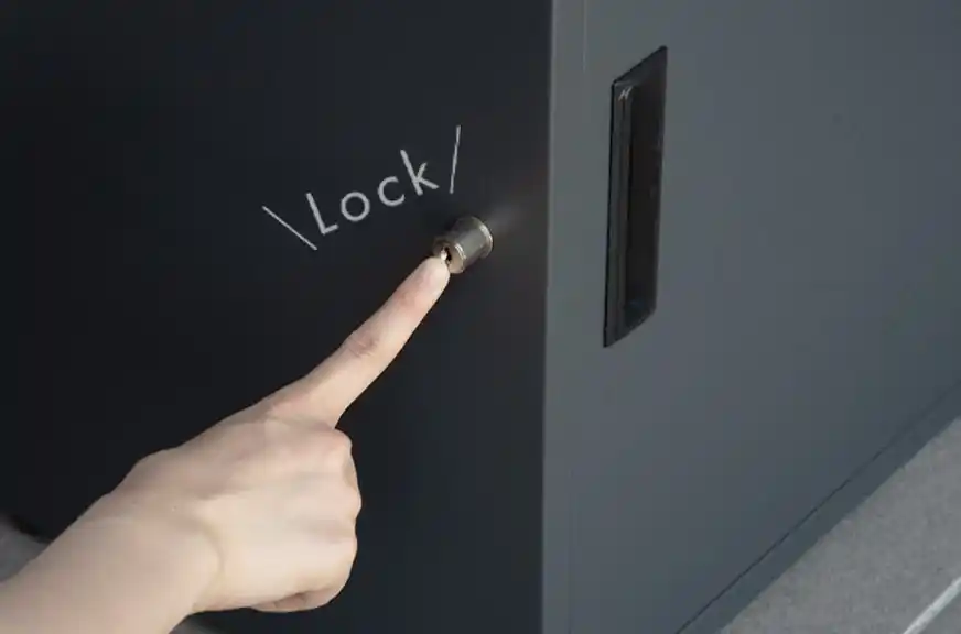 | 下扉には、押すだけで鍵を閉めることができるプッシュキーが搭載されています。複雑な操作が不要なため、配達員の方が使いやすい設計となっており、安全に使用することができます。 | |||||||||
