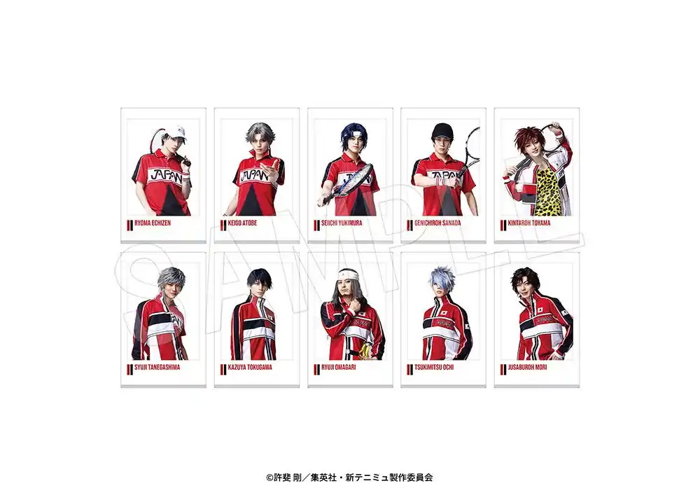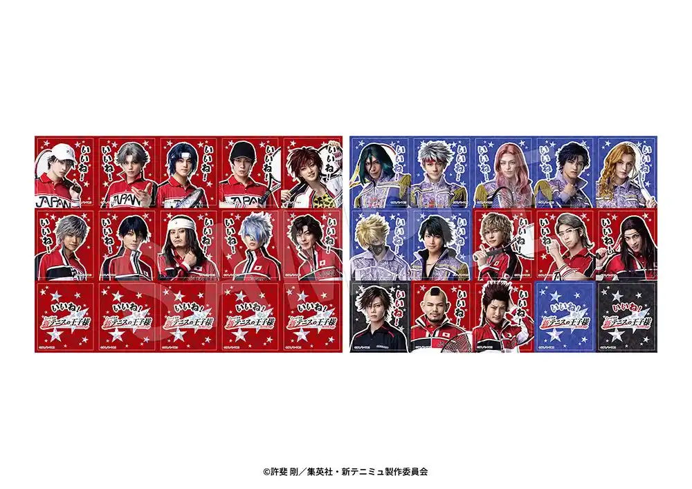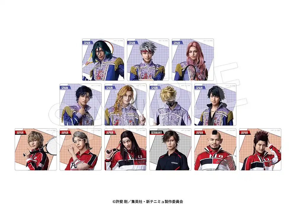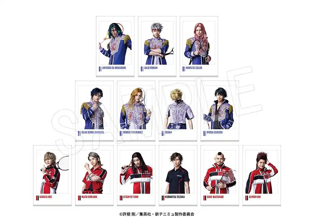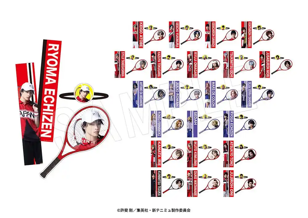 ラインナップ:越前リョーマ、跡部景吾、幸村精市、真田弦一郎、遠山金太郎、種ヶ島修二、徳川カズヤ、大曲竜次、越知月光、毛利寿三郎、アントニオ・ダ・メダノレ、フリオ・ロマン、マルス・デ・コロン、シルバ・セラ・バンビエーリ、ロミオ・フェルナンデス、セダ、越前リョーガ、デューク渡邊、鬼 十次郎、君島育斗、遠野篤京、入江奏多、手塚国光(全23種) |