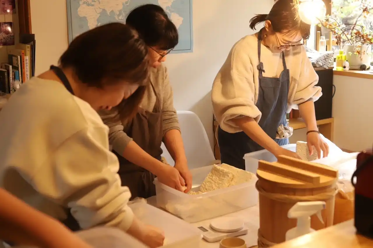 さかな農園 阪中純子さんが栽培した大豆を一部用いて、寒味噌づくりを教わります。1人約1kgの仕込みを予定。 |