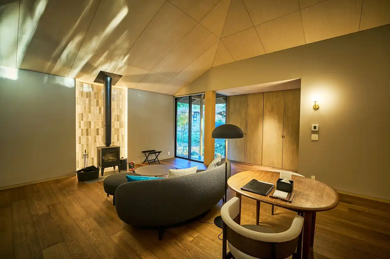 木立の中に立つ山小屋のような空間がコンセプトの3つのヴィラは、山の傾斜に沿って段々に部屋が連なるヴィラや、山肌に囲われた庭を持つヴィラなど、客室が周りの地形の一部として自然につながっていく、自然と共存する空間として新設。プライベートな庭を介し四季の移り変わりを通して、箱根の豊かな自然との対話をお楽しみいただけます。 |