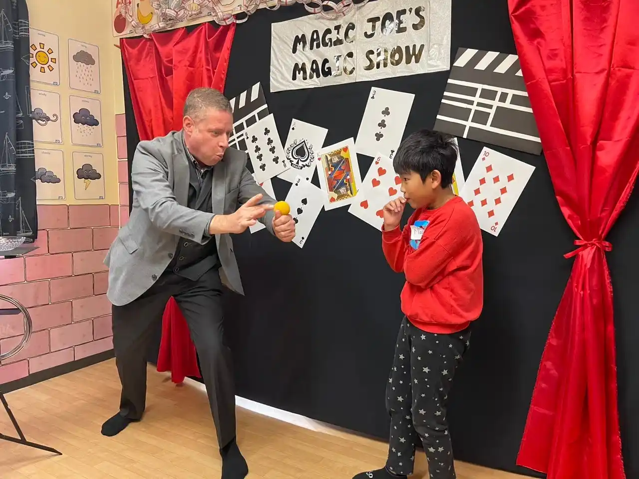 今回の英語マジックショーを担当した外国人講師は、かつて当校で子どもたちに英語を教えていた”元アライブの講師”です。時を超えてつながる講師とスクールの関係性もまた、当校が大切にしている組織文化です。長い年月を経て再び当校のイベントに関わり、英語でマジックを披露する姿は、子どもたちだけでなく、スタッフにとっても感慨深いひとときとなりました。 |