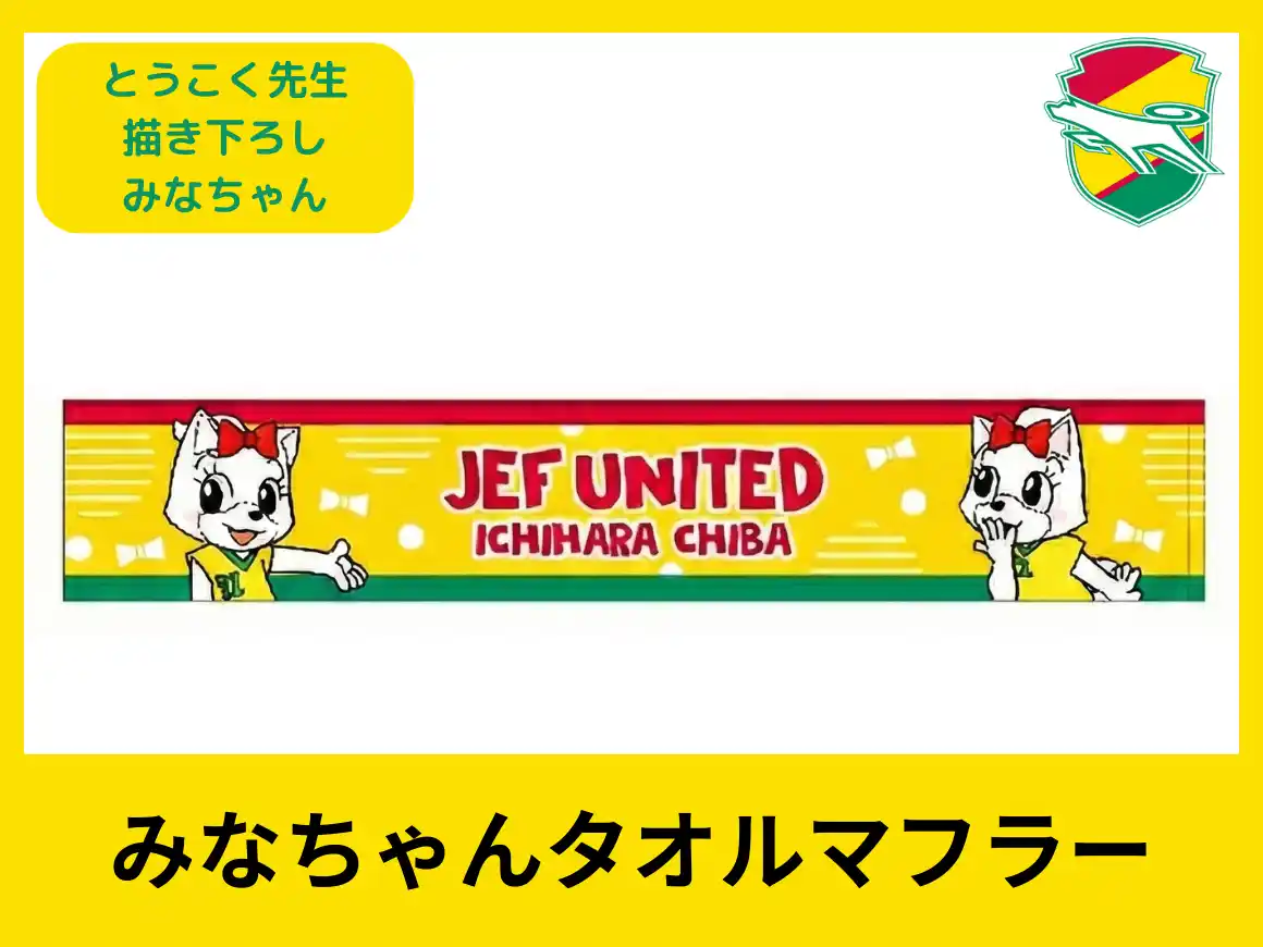 来期には冬シーズンも始めり、益々需要の高まる観戦スタイルの必需品、タオルマフラーのみなちゃんバージョンです。 スタジアムで掲げてアピールするのはもちろん、首に巻いた時にみなちゃんの顔が可愛く見えるようにデザインされています。 |
