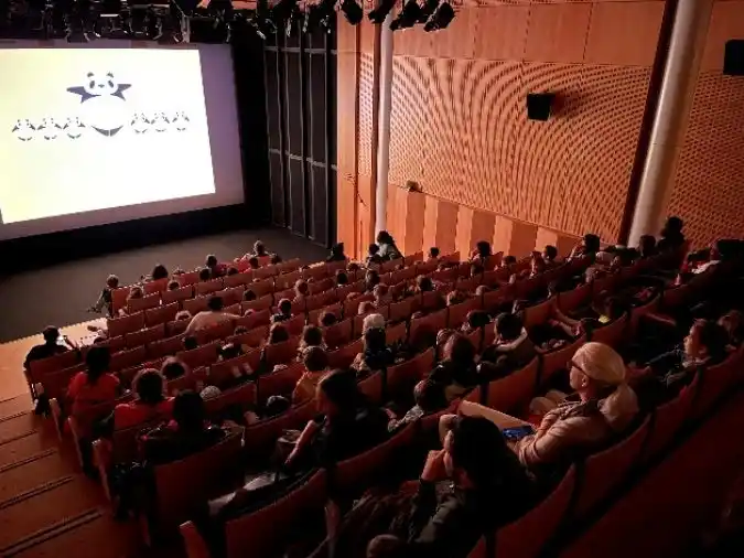 14時の上映会は幼稚園児、小学生の学童グループが参加できるようにフランス語吹替で上映。『パンダコパンダ』は一番盛況で、オープニングが始まるや否や子どもたちの笑い声や歌声が聞こえ、上映中も笑いの絶えない微笑ましい会となりました。 |