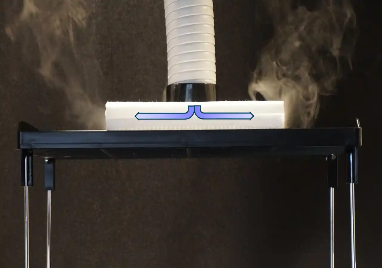 多層織物クッション材は、横方向がトンネル構造の為、空気が水平方向に流れ、通気性に優れます。 |