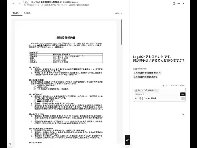 自社の文体、基準、リスク評価軸などをプロンプトへ組み込むことで、自社の事業・法務ポリシーを反映した独自のAI活用環境を構築できます。 |