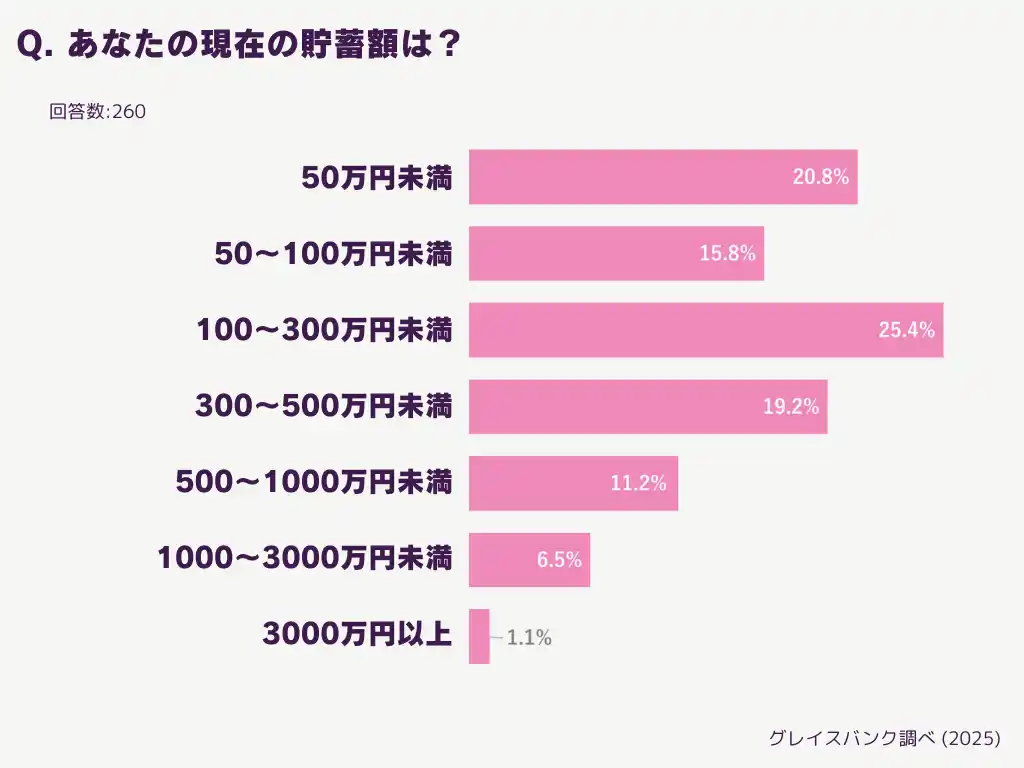 さらに、現在の貯金額についても聞いてみました。結果は以下の通り。 |