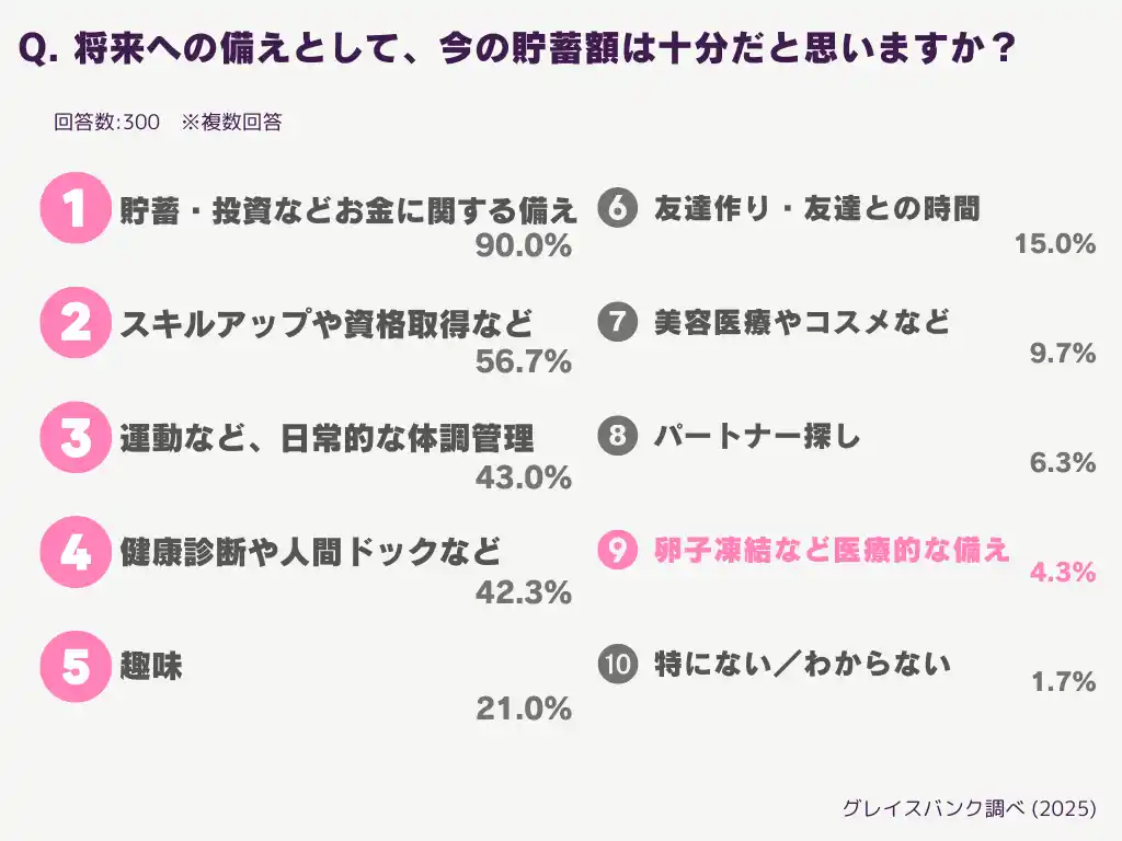「卵子凍結など、将来の選択肢を残すための医療的な備え」と回答した人も4.3%いました。 |