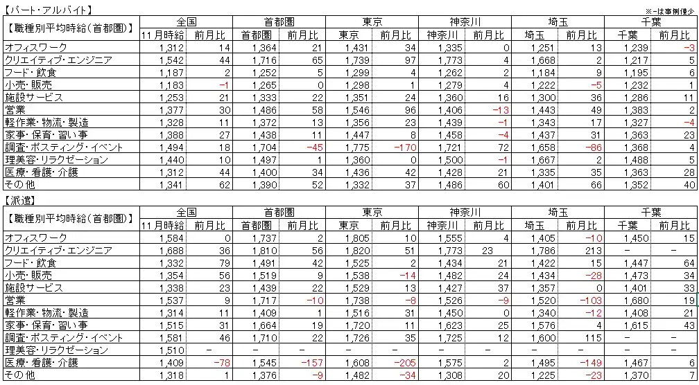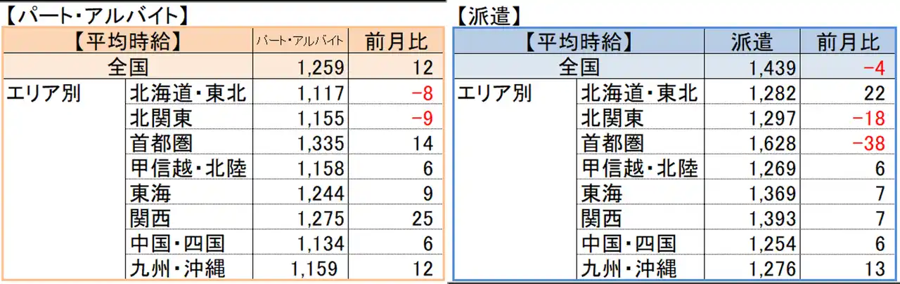 【パート・アルバイト】全国・全職種平均時給は1,259円。前月比+12円。前年同月比+56円。 |