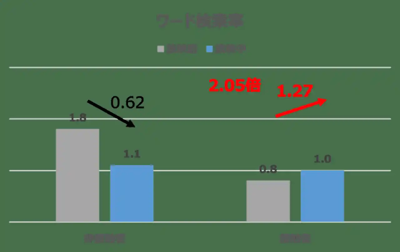 接触者と非接触者のリフト差はワード検索率で2.05倍と高く、サイト閲覧率でも1.35倍になっており、検索行動への高い効果が確認できました。