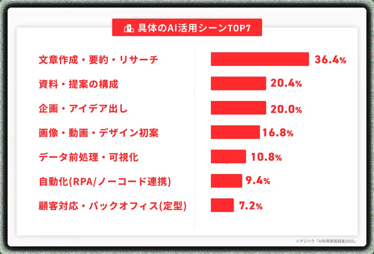 「初稿を早く→仕上げを磨く」という型が普及し、個人発信(動画・SNSの初案生成)にも広がりが見られます。 |