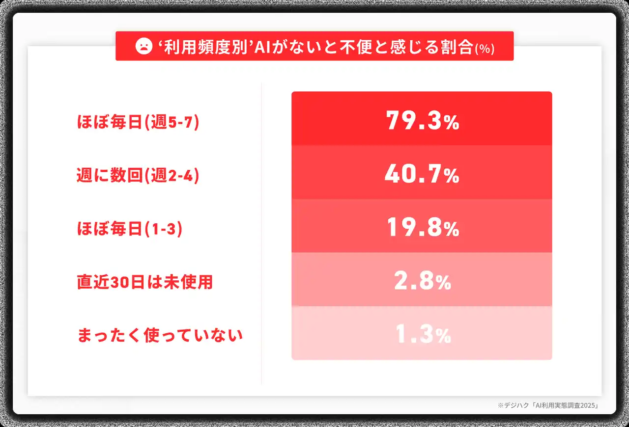 必要度の実感:“AIがないと不便”31.6%(利用頻度が高い層ほど上昇) |