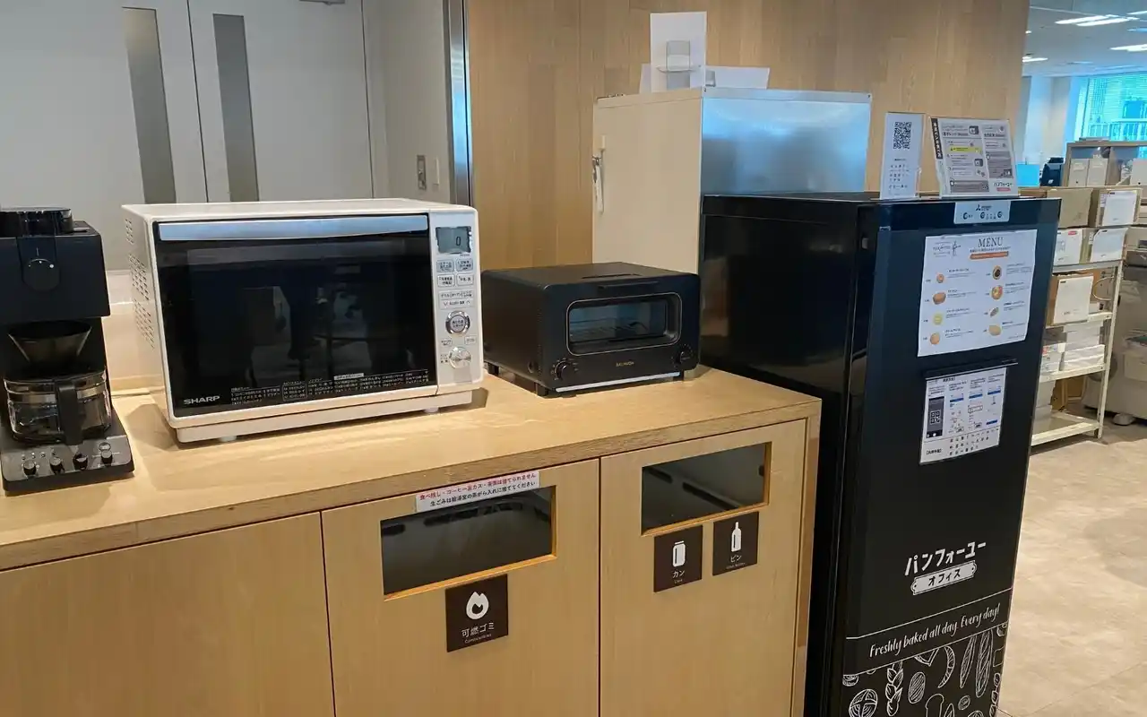 「電子レンジでパンを温めていると、“それ美味しそうですね!”と自然に声をかけられるんです。部署を超えた交流のきっかけになっています。」(社員コメント) |
