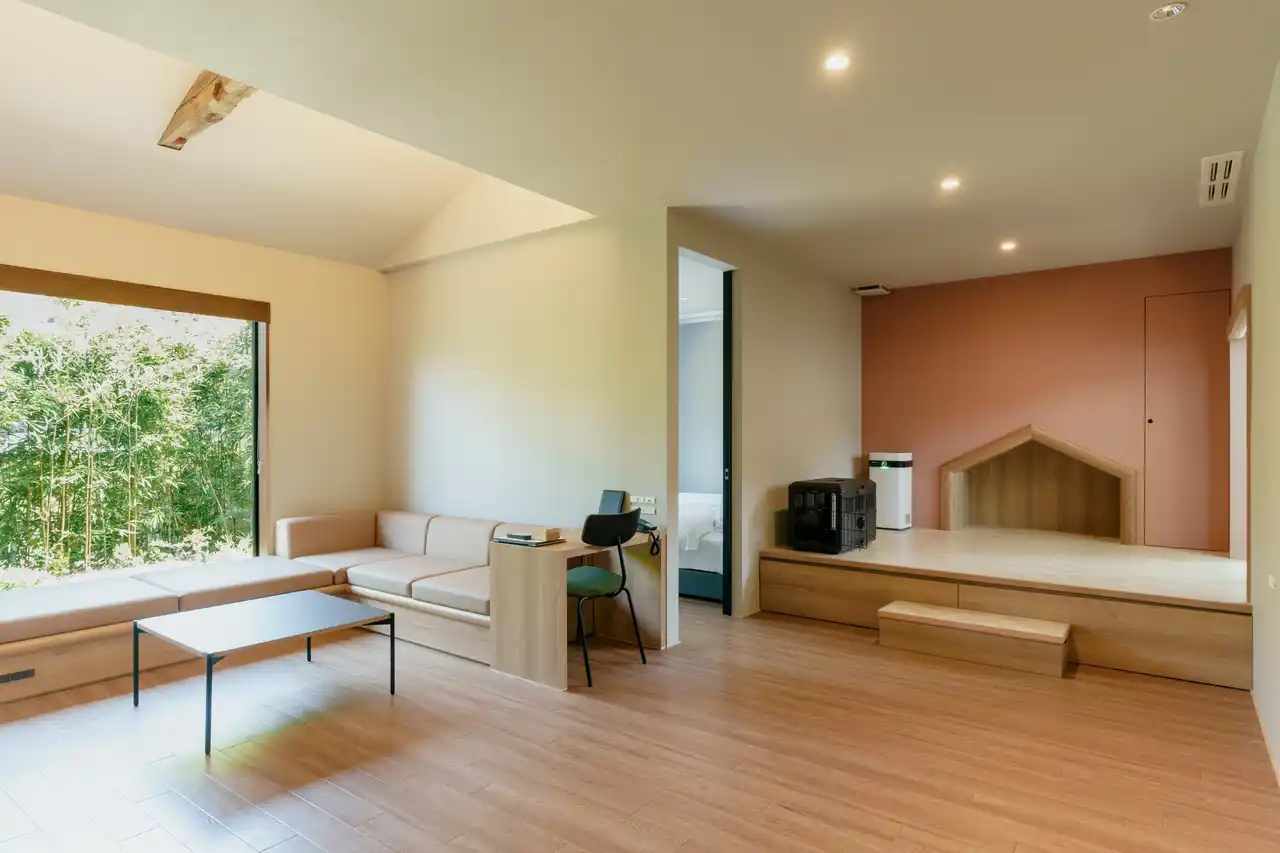 館内には、自由にご利用いただけるラウンジ機能を備えております。 コーヒーや山口名産の夏みかんジュースなど、ソフトドリンクを自由にお楽しみいただけるほか、 チェックイン後のひと休みや、食後の語らいなど、それぞれの時間に合わせて、 愛犬とともに穏やかなひとときをお過ごしいただけます。 |