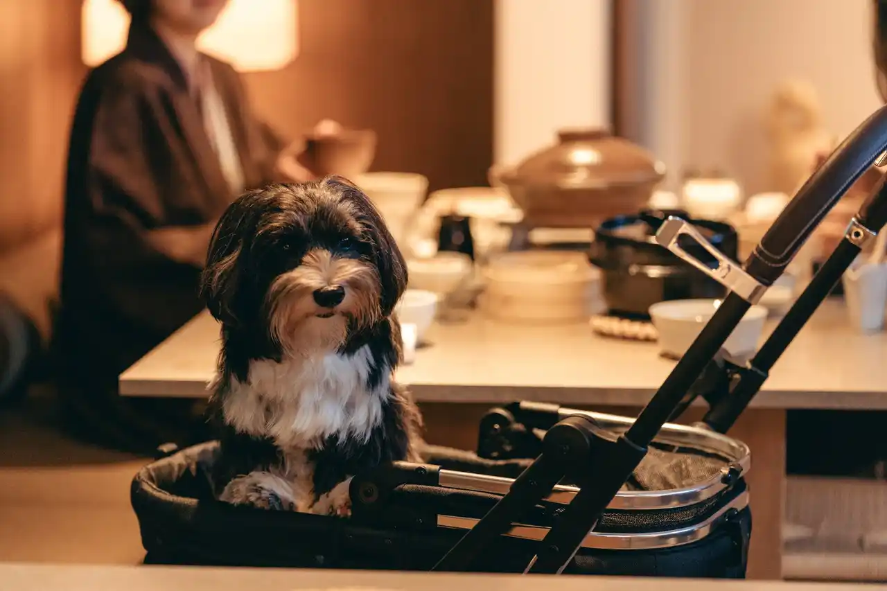 『愛犬と一緒に食事がしたい』というお客様からの声にお応えし、この度、わんちゃんと一緒にお食事を楽しめる「わんファミリー留来留(るくる)」が誕生いたします。下関名物のふく料理をはじめとしたお食事を、夕食朝食ともに愛犬とご一緒にリラックスしてお愉しみいただけます。 |
