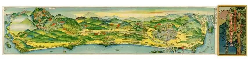 大正13年発行の「川棚温泉及び狗留孫山名勝圖繪」を展示 川棚温泉から狗留孫山までの古地図で時を超える旅の原点を表現 |
