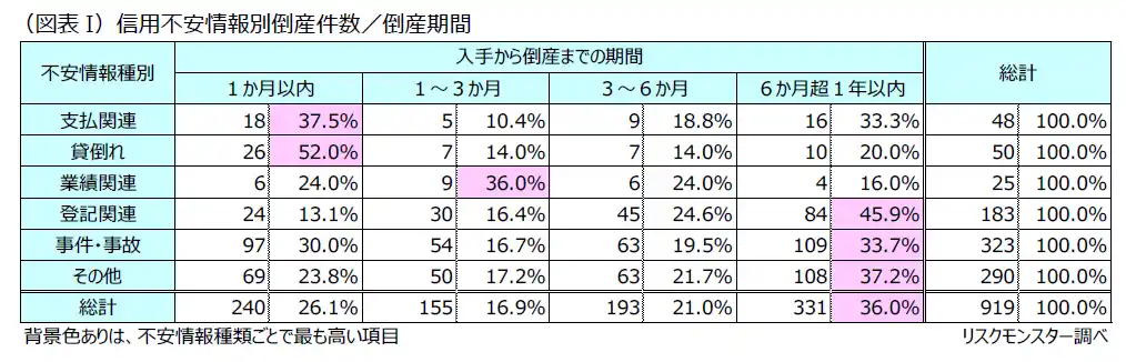 図表I 信用不安情報別倒産件数/倒産期間 |