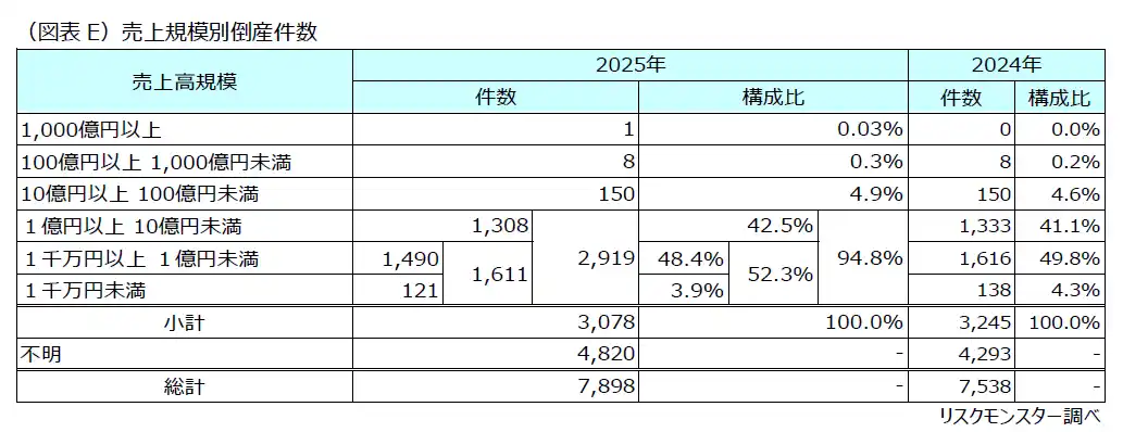 図表E 売上規模別倒産件数 |