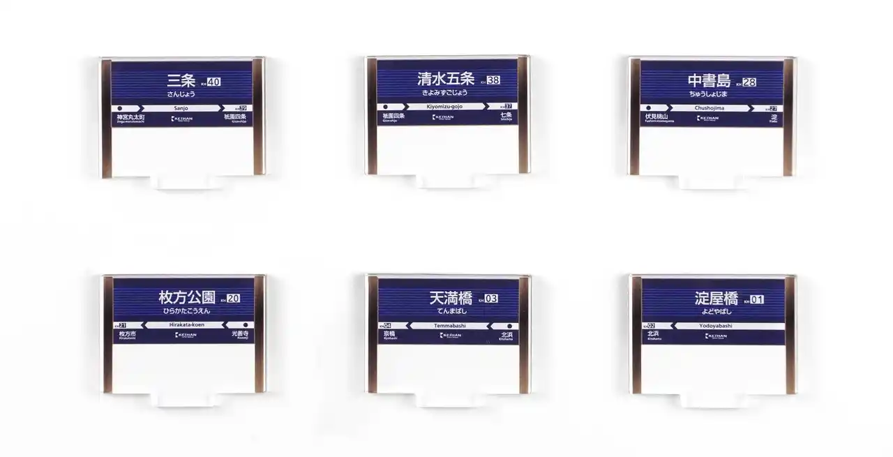 京阪本線風景台座に名所最寄り駅の「駅名標」を6個付属 |