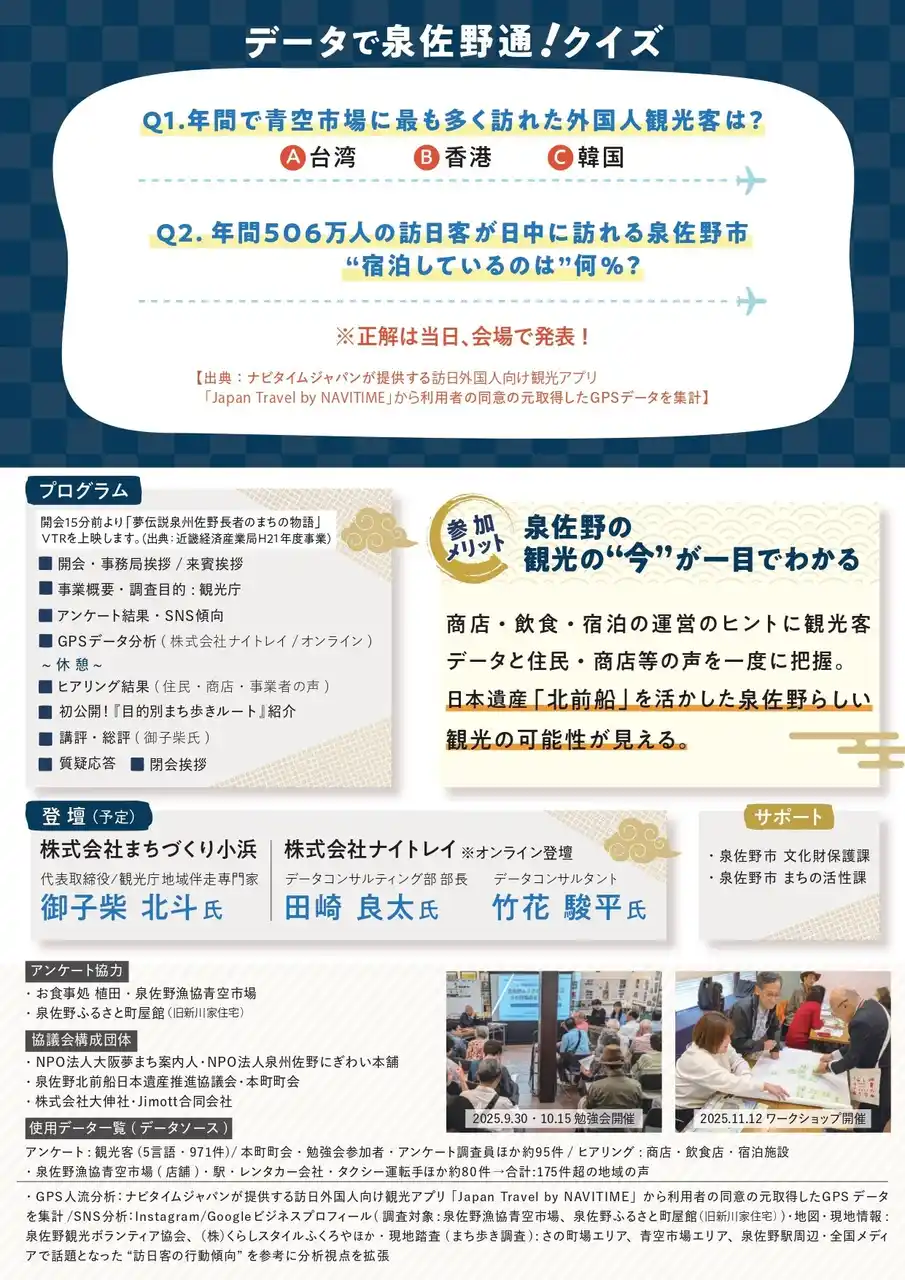 地域の方々の協力もあり、現場の実感とデータの双方から泉佐野の“いま”を把握する取り組みとなりました。 |