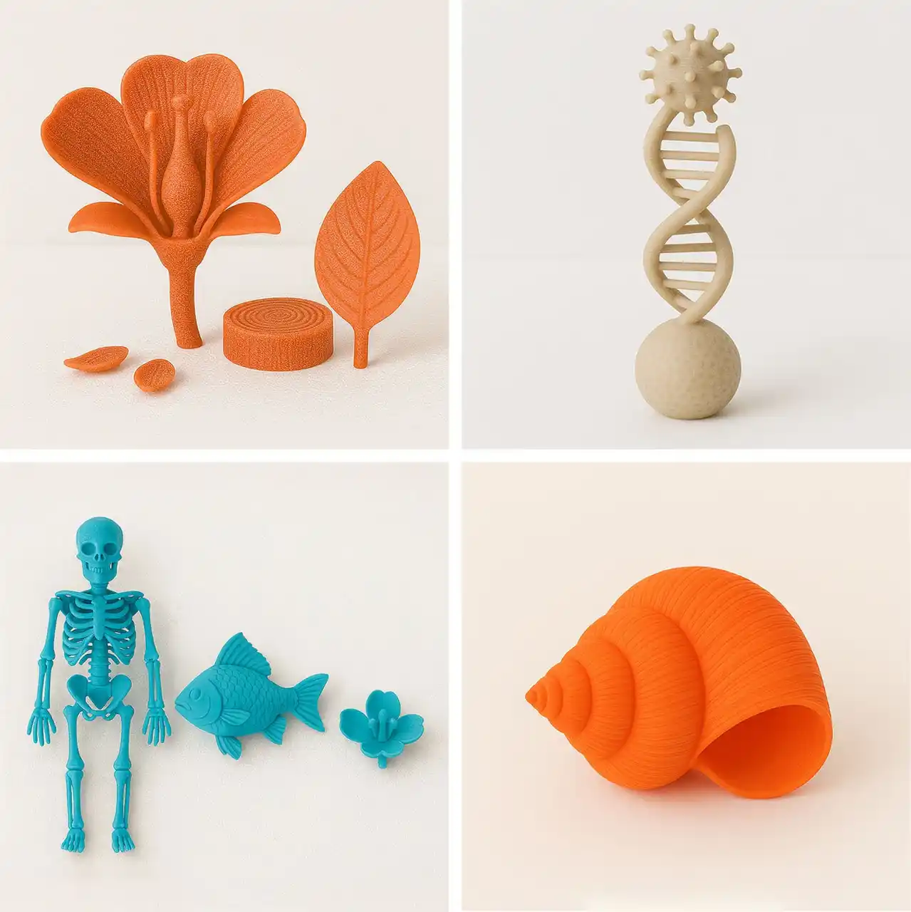 花の構造・DNAモデル・骨格・魚・貝殻・花 |